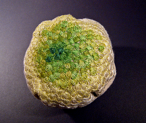 These handmade sculptures were my breakthrough embroidery work. They were displayed in exhibitions in Toronto (2012) and New York (2014) as mobile installations titled, Exuberance.