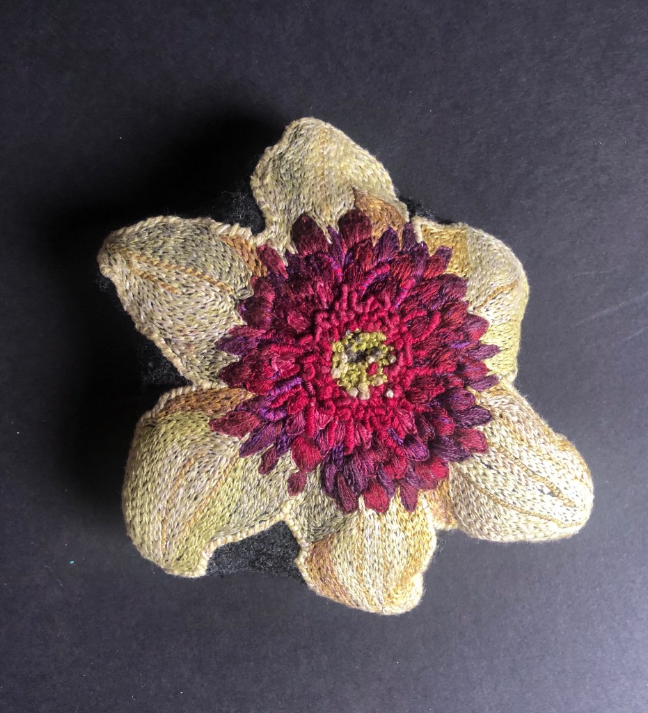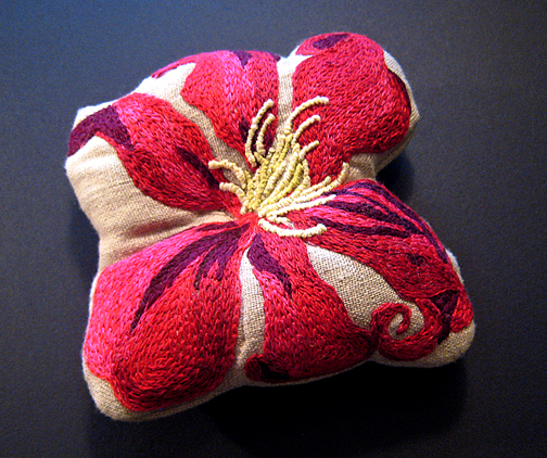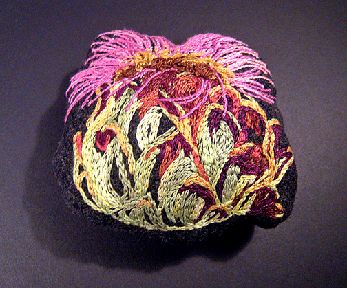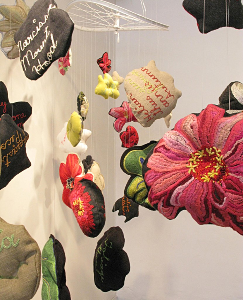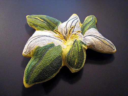 The embroidered botanical sculptures featured here came from a desire to prolong the Canadian gardening season into winter.